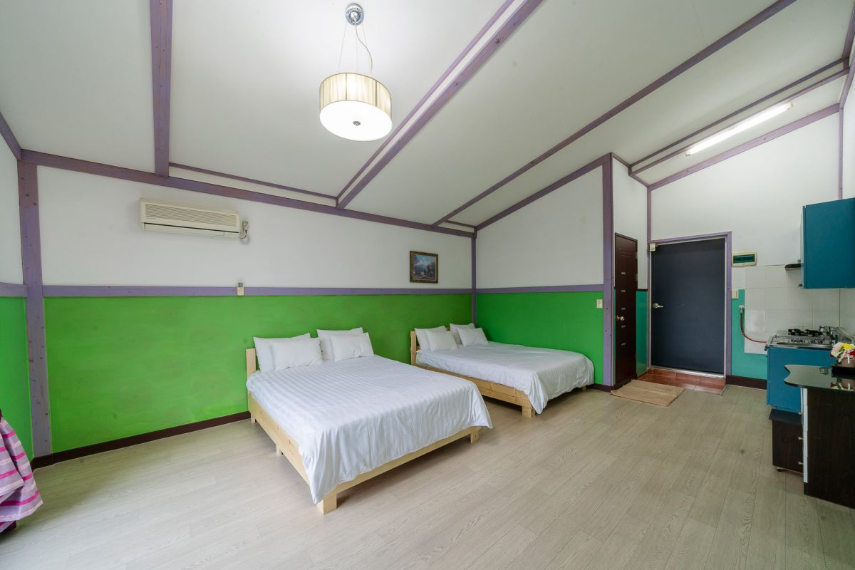 - 시설 : TV,침대,식탁,에어컨,냉장고,가스렌지,전자렌지,드라이기,취사,전기밥솥,욕실용품